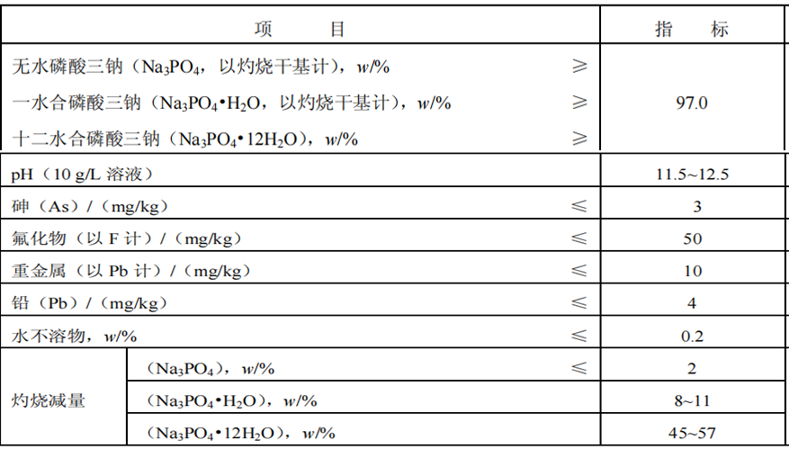 注:磷酸三钠(食品级)在使用、储存和运输等过程中需严格按照食品安全相关管理条例执行。